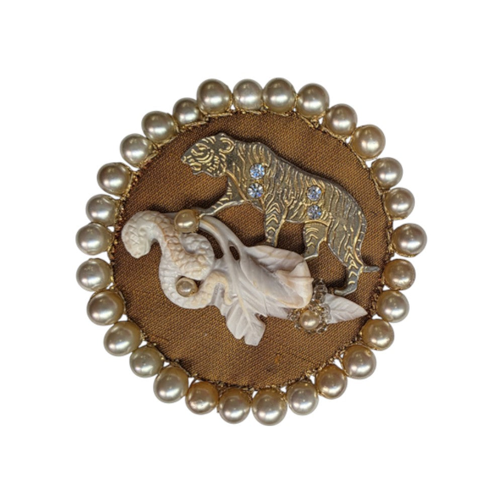 Sardonic Shell, Metal, Beads, Fabric
