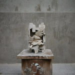 In Wrapped n.4, Daniele Accossato traps a fragment of a winged body inside a rigid shell, similar to an industrial packing case. The bare foot and feathers struggle to emerge through the block’s interlocking shapes, revealing a figure trying to expand within a space that restrains it.