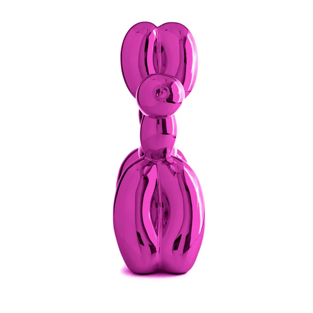 The "Balloon Dog L" Pink sculpture reproduces Jeff Koons' iconic balloon dog in a lively and bold variant, perfect for those who love contemporary design and are not afraid of color. Made of cold cast resin and finished with high quality paint layers, it has a smooth, shiny and perfectly polished surface, the result of careful craftsmanship. This limited edition is offered in only 500 pieces: each sculpture is individually numbered with an engraving placed under one of the legs, corresponding to the number shown on the Certificate of Authenticity included. The certificate also allows access to a protected digital environment for the official verification of the work, guaranteeing exclusivity and authenticity. With dimensions of 30 x 30 x 12 cm and a weight of 1.5 kg, the "Balloon Dog L" Pink is a perfect decorative piece to enrich shelves, tables, consoles or display spaces, becoming a real focal point in any environment.