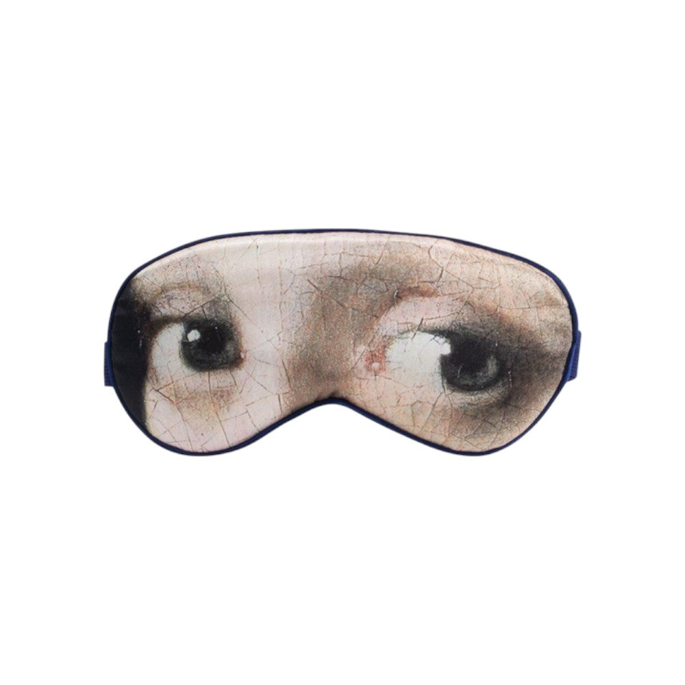 Blackout eye mask with adjustable headband and soft padding, ideal for complete relaxation and restful sleep. Decorated with the image of the eyes of the Girl with a Pearl Earring by Dutch painter Johannes Vermeer.