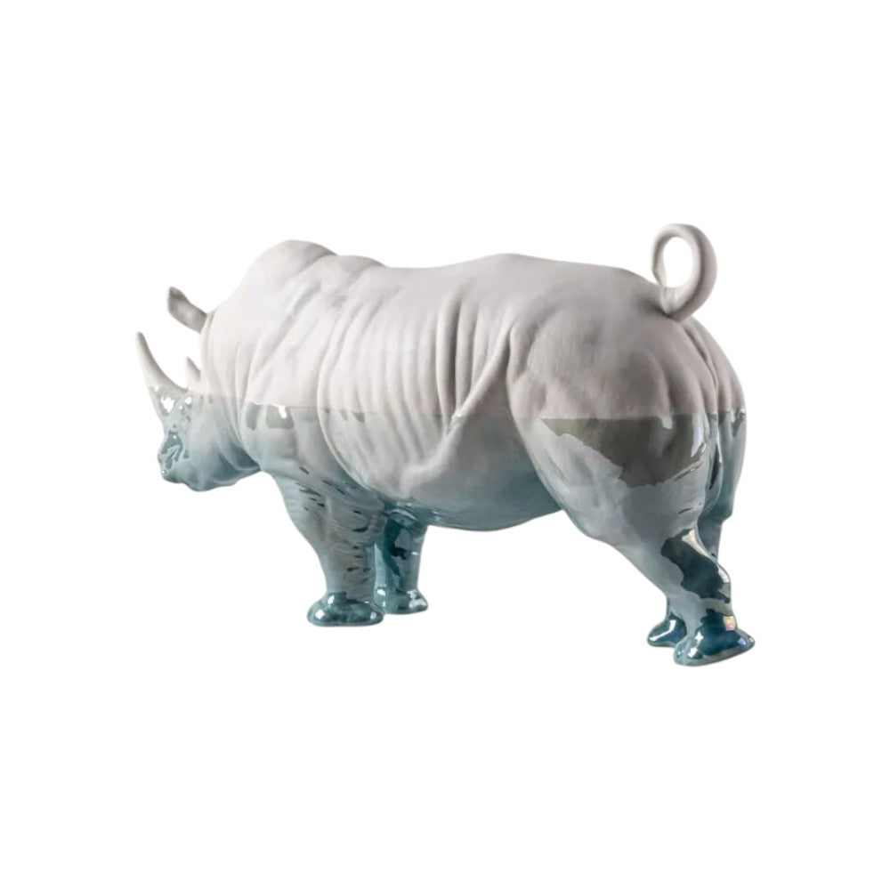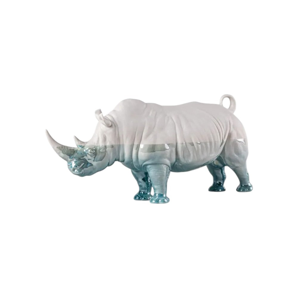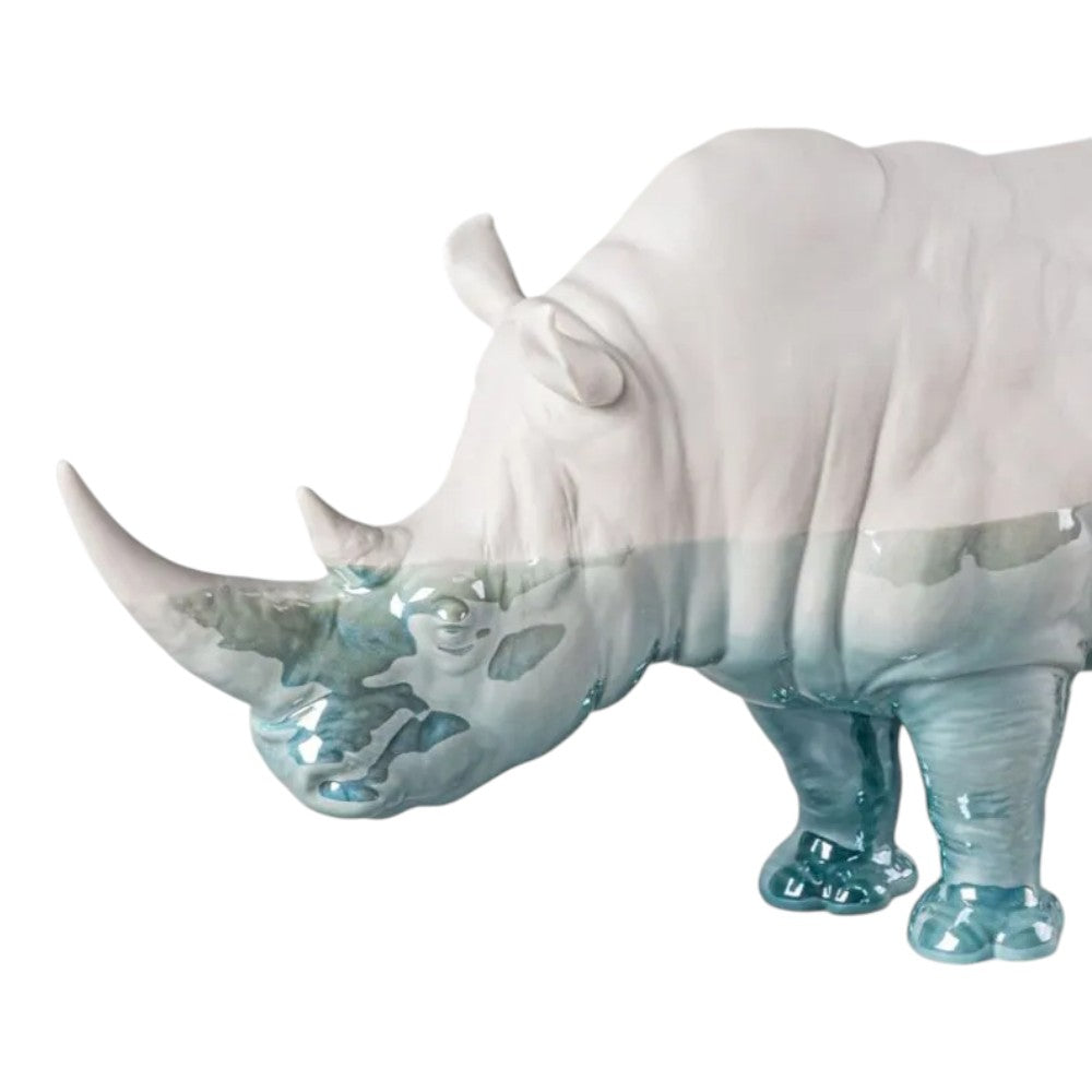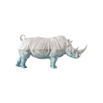 LLADRÓ PORCELAIN SCULPTURE "RHINOCEROS – UNDERWATER" WHITE AND BLUE