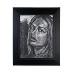 In Pencil 5, Rhed depicts a female face caught in a suspended expression, almost between vulnerability and resistance. The dense, textured graphite strokes create light and shadow that envelop the gaze, making it the emotional heart of the work. The artist does not seek mere resemblance, but an inner presence: the drawing becomes a psychological investigation, where every mark conveys intensity, restlessness, and humanity.