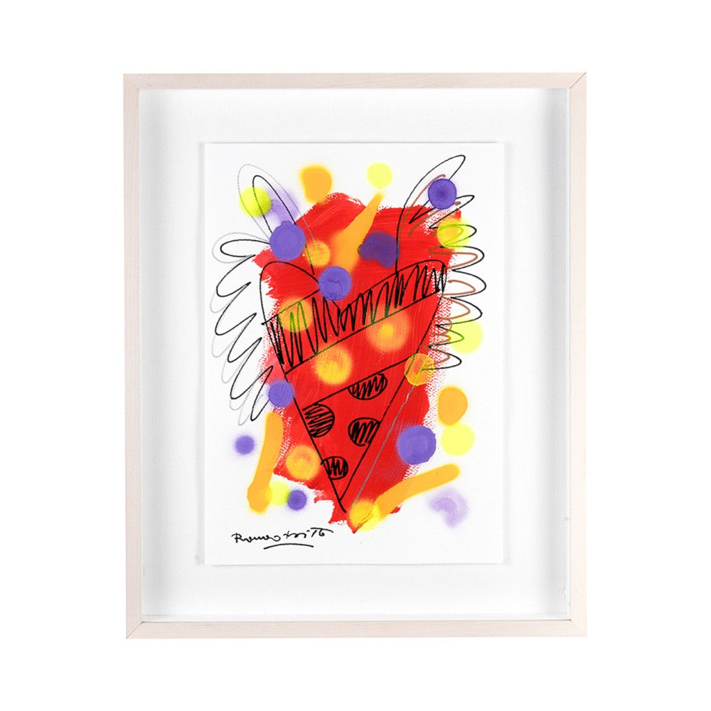 The dots of color and quick marks in the background accentuate the sense of movement and spontaneity, transforming the heart into a light and playful explosion. Here, Britto moves away from the rigid geometry of his more pop compositions, but retains his essential signature: a bright and optimistic use of color, capable of conveying emotional immediacy.