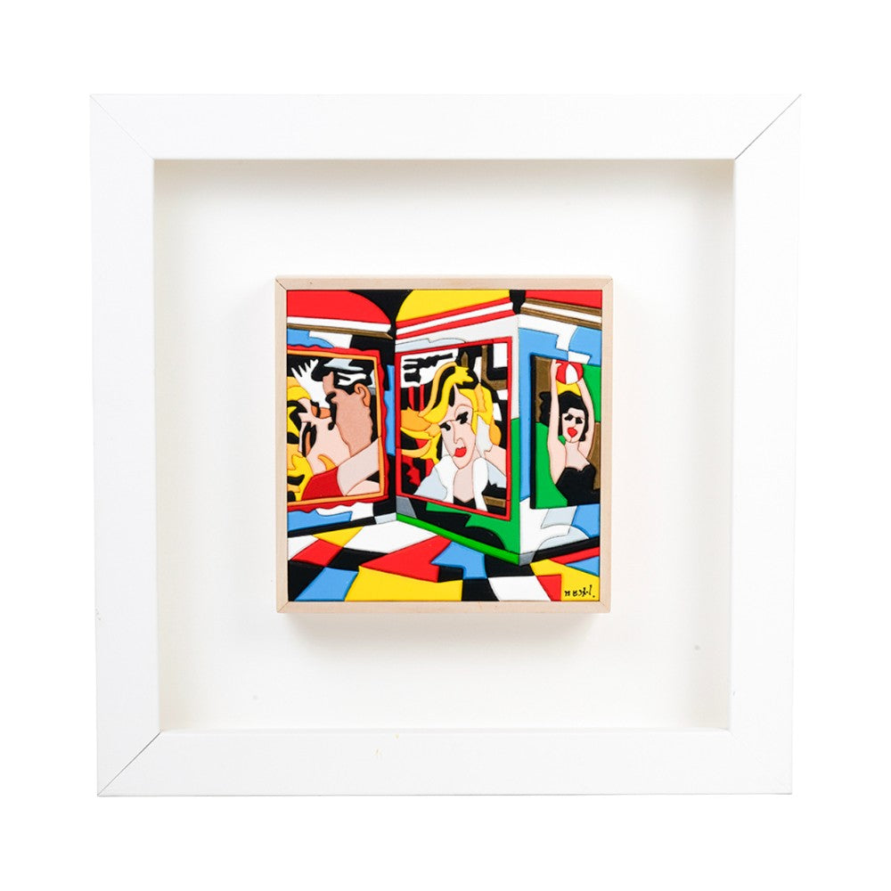 His practice spans painting, sculpture, photography, experimental cinema, design, graphics, and set design. Color, irony, and conceptual construction coexist in a production that rejects the rigid distinction between major arts and applied arts. His works are characterized by a strong playful component and a conscious use of quotation, seriality, and symbolic language.