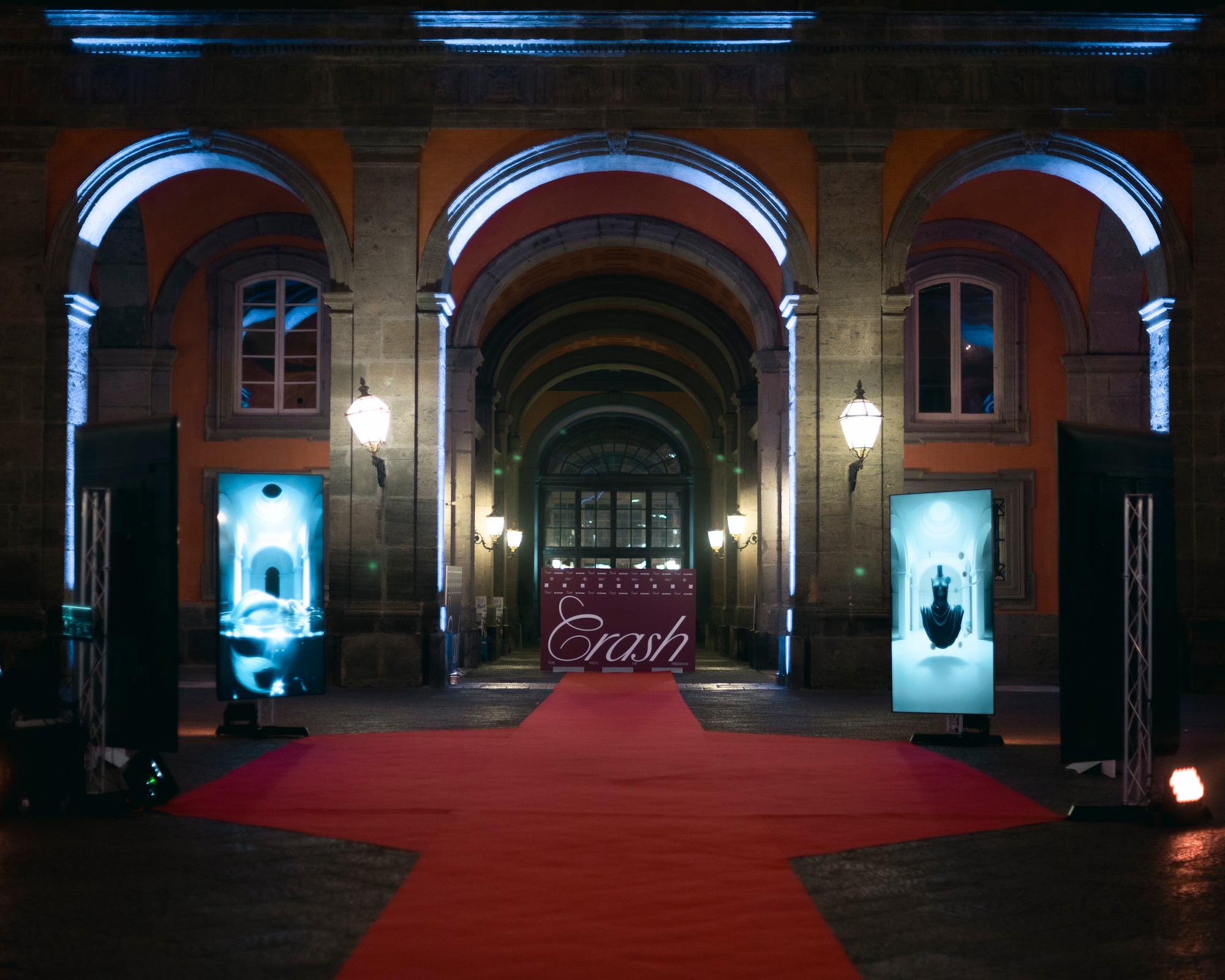 In the courtyard and on the grand staircase of the Royal Palace of Naples, the works of five artists from the Foundation's roster, Marco Grasso, Pedro Perdomo, Daniele Accossato, Luca Bellandi, and Angelo Accardi, came to life digitally, amplifying the artistic gesture and poetic essence with visual experiences and a monumental projection. A powerful dialogue between art and technology, in which AI becomes a poetic extension rather than a replacement, an amplification rather than an imitation. Crush is a community, all together on fertile ground, a bridge between worlds, a laboratory of ideas and possibilities.