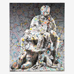 The relationship between art and literature, Chisesi's distinctive feature, is manifested in all its power in this work. Count Ugolino, a symbolic character of the ninth circle of Dante's Inferno, comes to life through a contemporary vision that blends classicism and imagination. Alongside the tragic figure of Ugolino, another love of the artist emerges: Sicily, a land of contrasts and beauty. From shapes to colors, every detail of the canvas bears the unmistakable signature of Chisesi and his SALIGIA, the project that intertwines the seven deadly sins with Dante's journey.